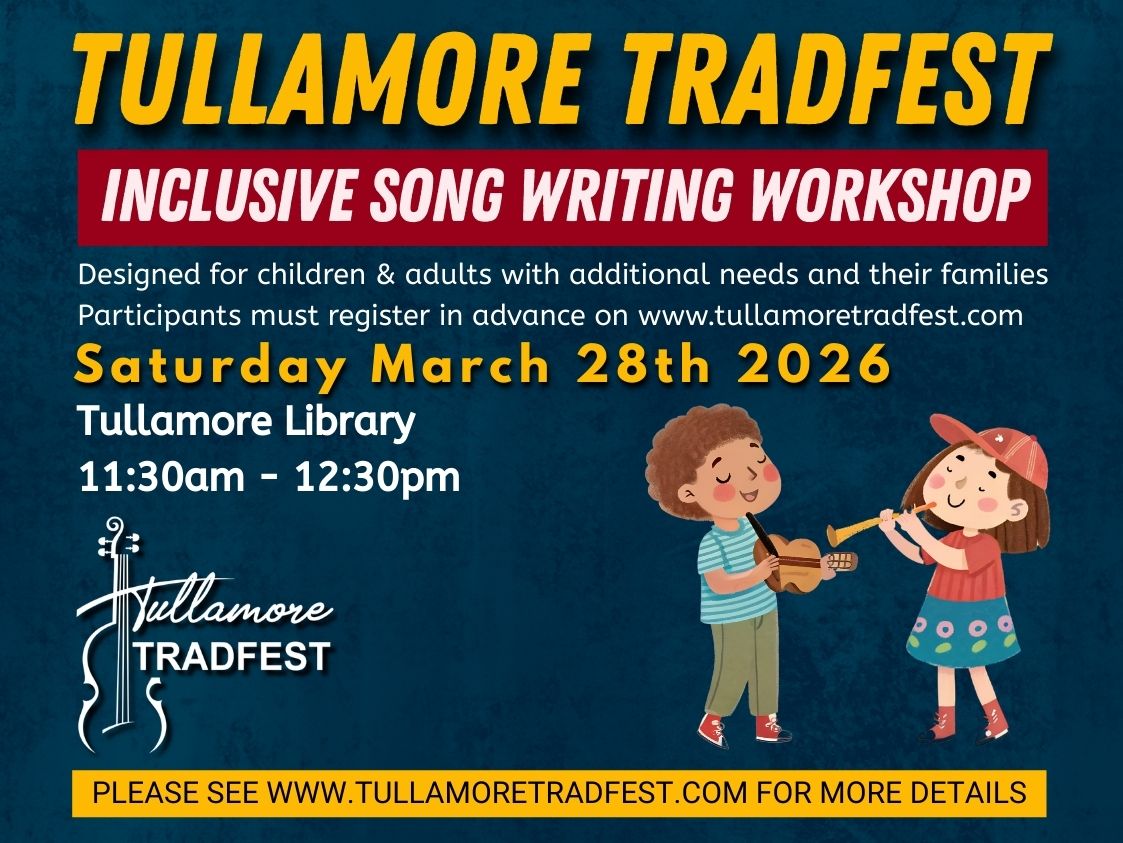 It is an opportunity to come together and write and create this next big hit or even the next best parody of songs that might hit the airwaves. This event will be led and supported by Music Therapist Ciana McGarrigle and will culminate in a live performance event during the TradFest weekend. This performance will be a showcase of some of the material created and there may even be a performance of one or two well known and familiar songs - if some of the group feel up to showcasing their skills.