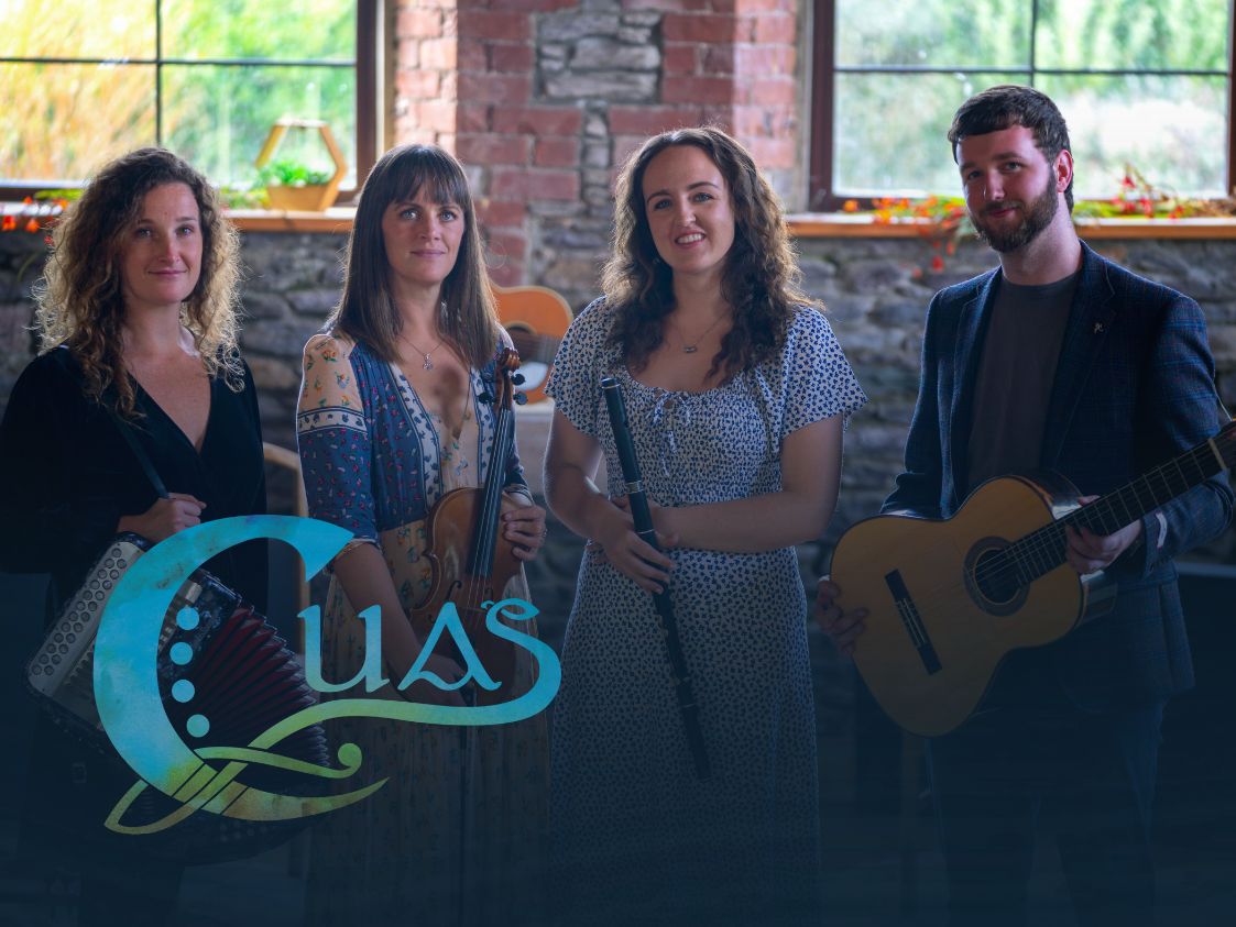 Méabh Ní Bheaglaoich (accordion, vocals), Nicole Ní Dhubhshláine (concertina, flute), Niamh Varian-Barry (fiddle, viola, vocals), and Kyle Macaulay (guitar, bouzouki) formed CUAS in early 2023, a collective dedicated to celebrating the vibrant and diverse musical traditions of West Kerry. Drawing inspiration from the emotive songs and dynamic dance traditions of the region, the group places the intrinsic connection between listener and performer at the core of their performances.