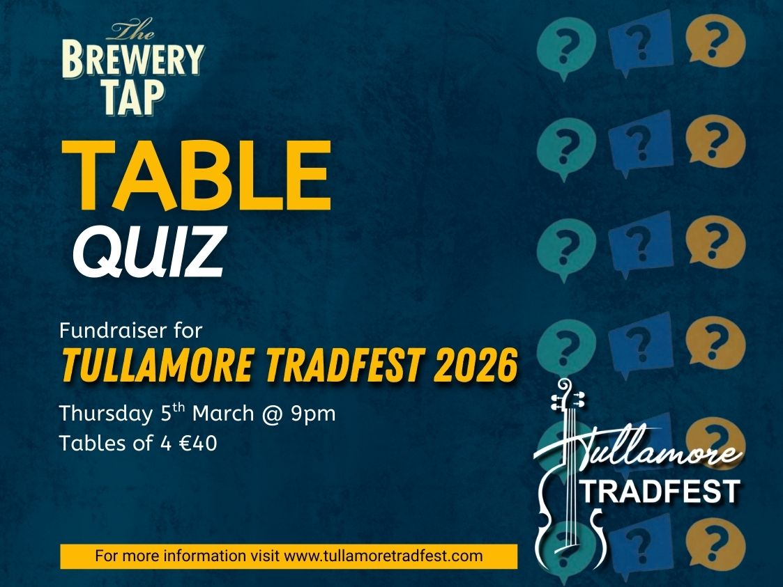 Join us in The Brewery Tap, Tullamore for our much-loved Annual Table Quiz Fundraiser in support of the festival.